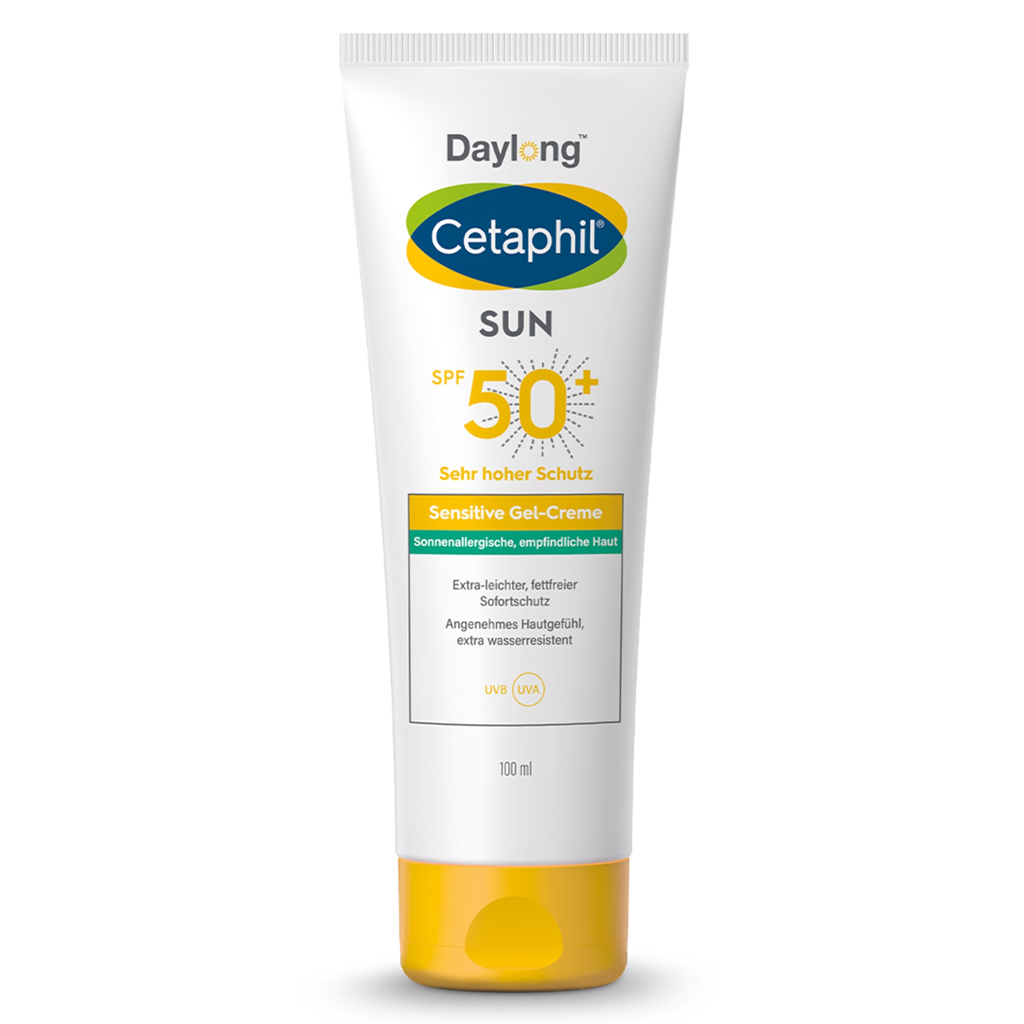 Die Cetaphil® Sun Daylong Sensitive Gel-Creme SPF 50+ bietet starken Schutz und hohen Komfort für die empfindliche Haut. Die extra leichte und fettfreie Gel-Creme ist durch den Verzicht auf Fette und herkömmliche Emulgatoren sehr gut verträglich – und das auch für empfindliche und anspruchsvolle Haut. Sie leistet sofortigen und umfassenden Sonnenschutz dank der verwendeten photostabilen Breitbandfilter. Diese schützen die Haut vor UVA-, UVB- und IR-Strahlen, und beugen zudem effektiv Hautalterung vor. Die extra leichte Gel-Creme zieht sehr schnell ein und brennt nicht in den Augen und mit ihrem starken Sonnenschutz bietet sie ideale Voraussetzungen für Sport, Baden, Lesen oder einfach nur im Alltag.
