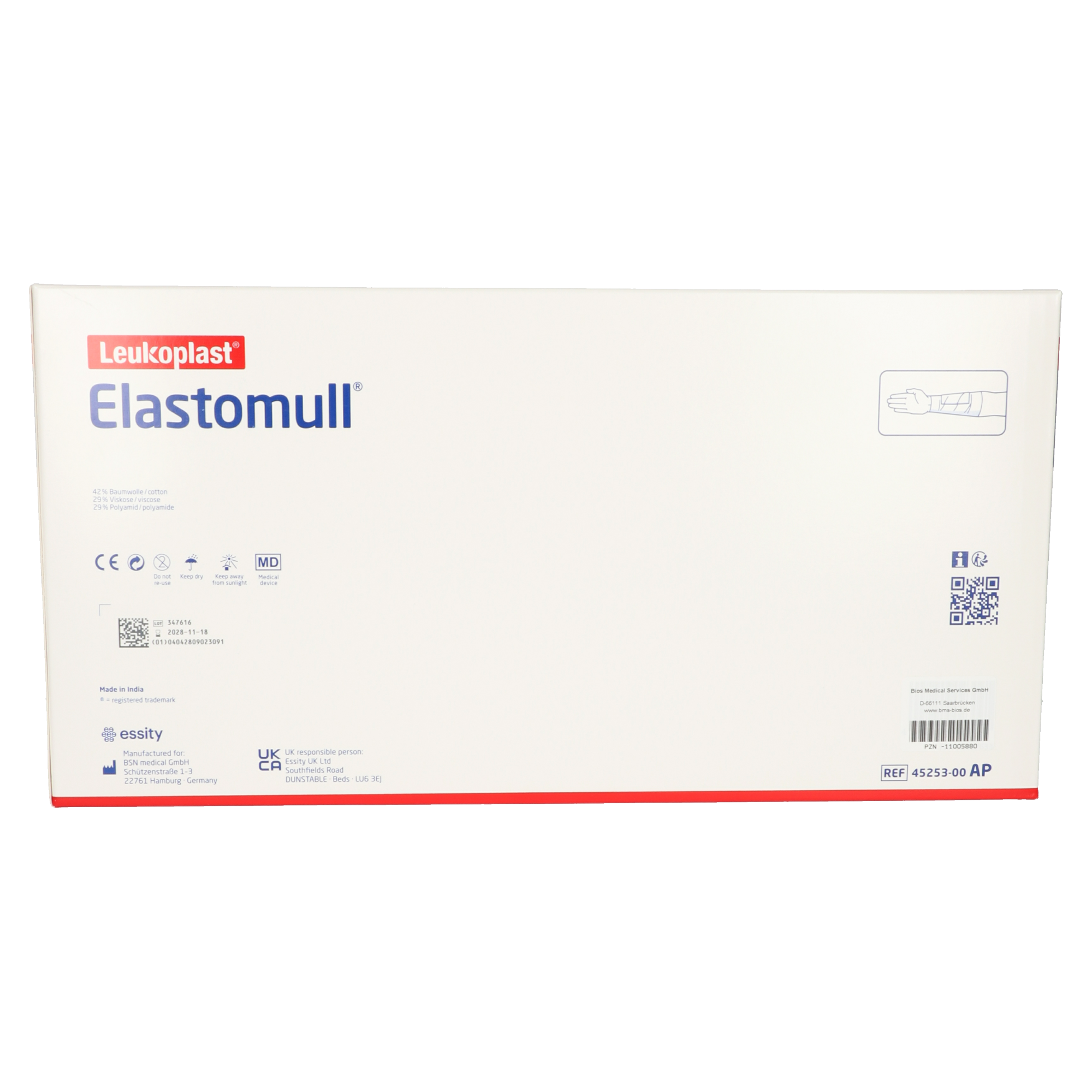 Die Elastomull® Fixierbinde ist eine hochelastische, weiche Binde zur sicheren Fixierung von Wundauflagen, insbesondere an viel bewegten oder konischen Körperstellen. Mit einer Größe von 10 cm × 4 m eignet sie sich ideal für die zuverlässige Fixation im medizinischen Alltag. Die Binde ist luftdurchlässig, angenehm auf der Haut und lässt sich leicht anmodellieren.