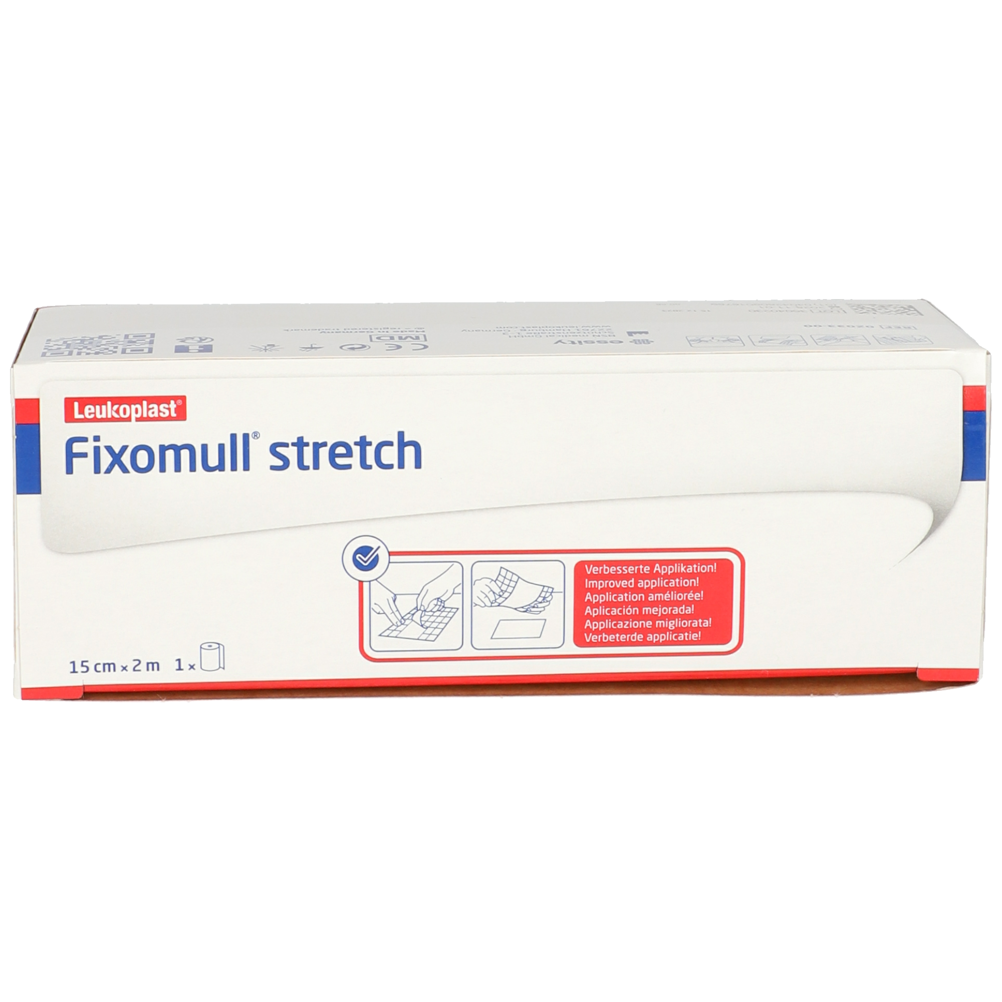 Mit Fixomull® stretch können Sie vollflächig Wundauflagen und Kompressen an viel bewegten Körperstellen und Gelenken fixieren. Mit einer Größe von 15 cm × 2 m eignet er sich ideal auch zur sicheren Befestigung von Sonden, Kathetern und Messelementen. Der Verband ist durch seine Querelastizität anschmiegsam und passt sich auch stark konturierten Körperpartien gut an. Abschnürungen, Stauungen und Durchblutungsstörungen werden verhindert. Das Produkt verfügt über eine gute Sofort- und Dauerklebkraft und gute Luft- und Wasserdampfdurchlässigkeit. Es beugt Kontaminationen vor, wird auch von hautempfindlichen Patienten ausgezeichnet vertragen und ist einfach und vielfältig einsetzbar.