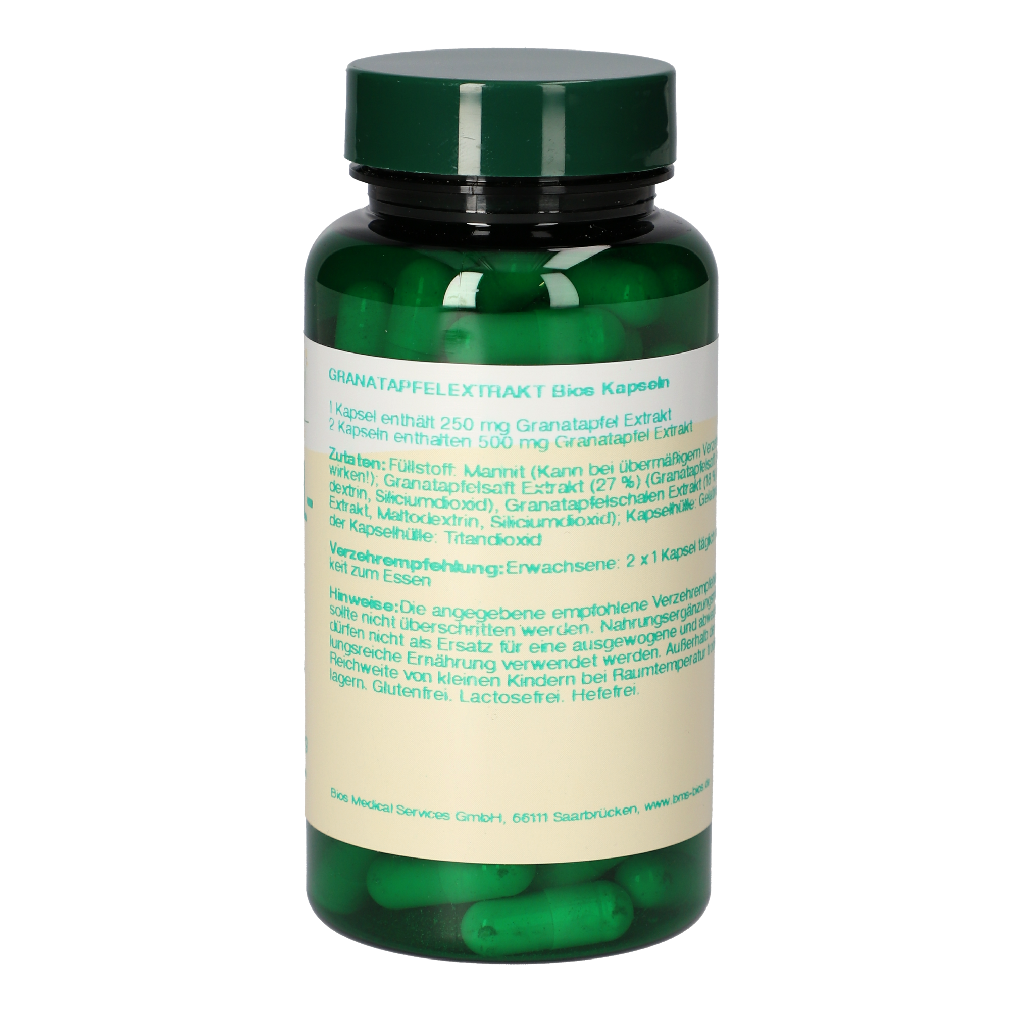 1 Kapsel enthält 250 mg Granatapfel Extrakt (reich an Polyphenolen und Ellagsäure).