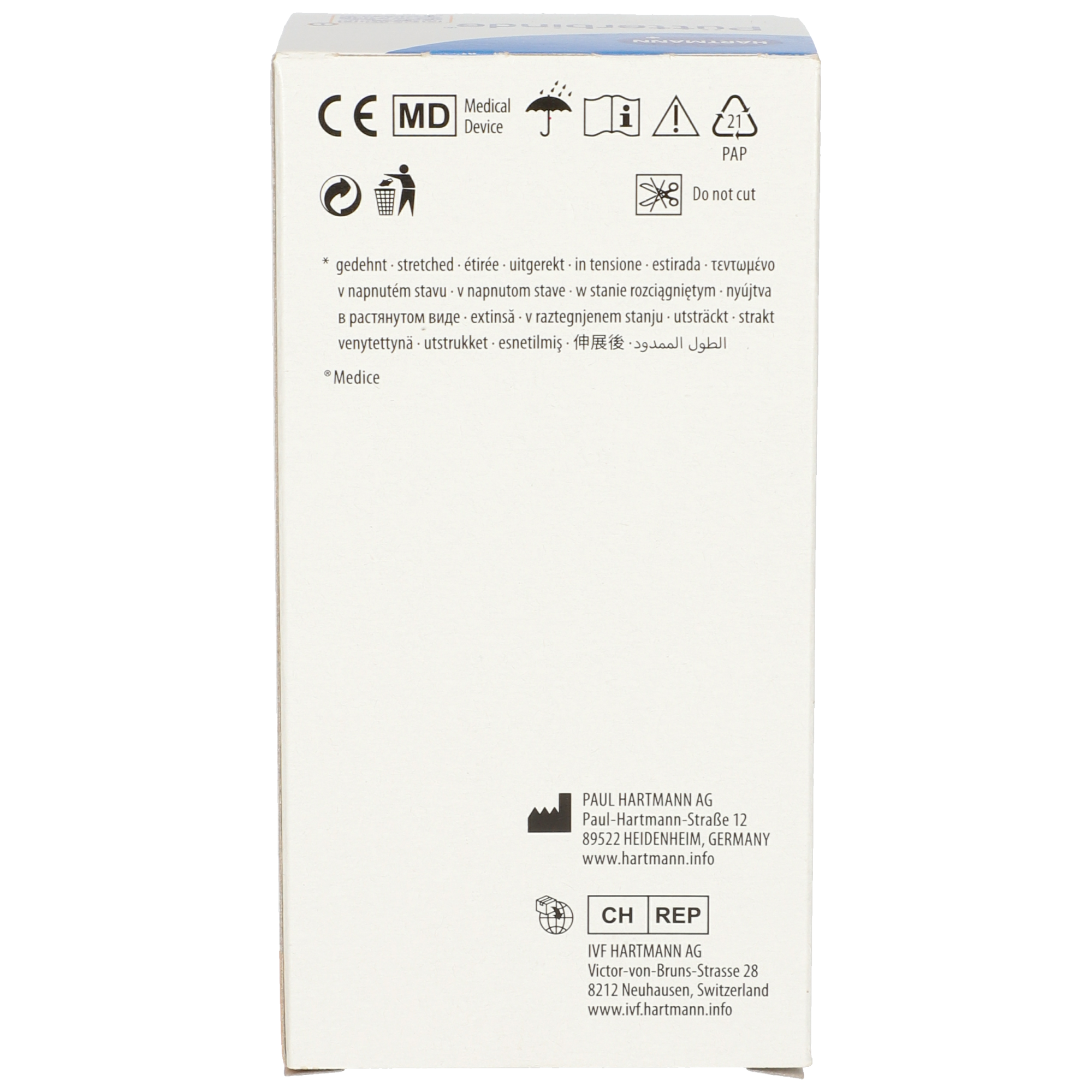 Die Binde gleichmäßig mit leichtem Zug und ohne Falten anlegen. Nicht durchschneiden – am Stück verwenden.