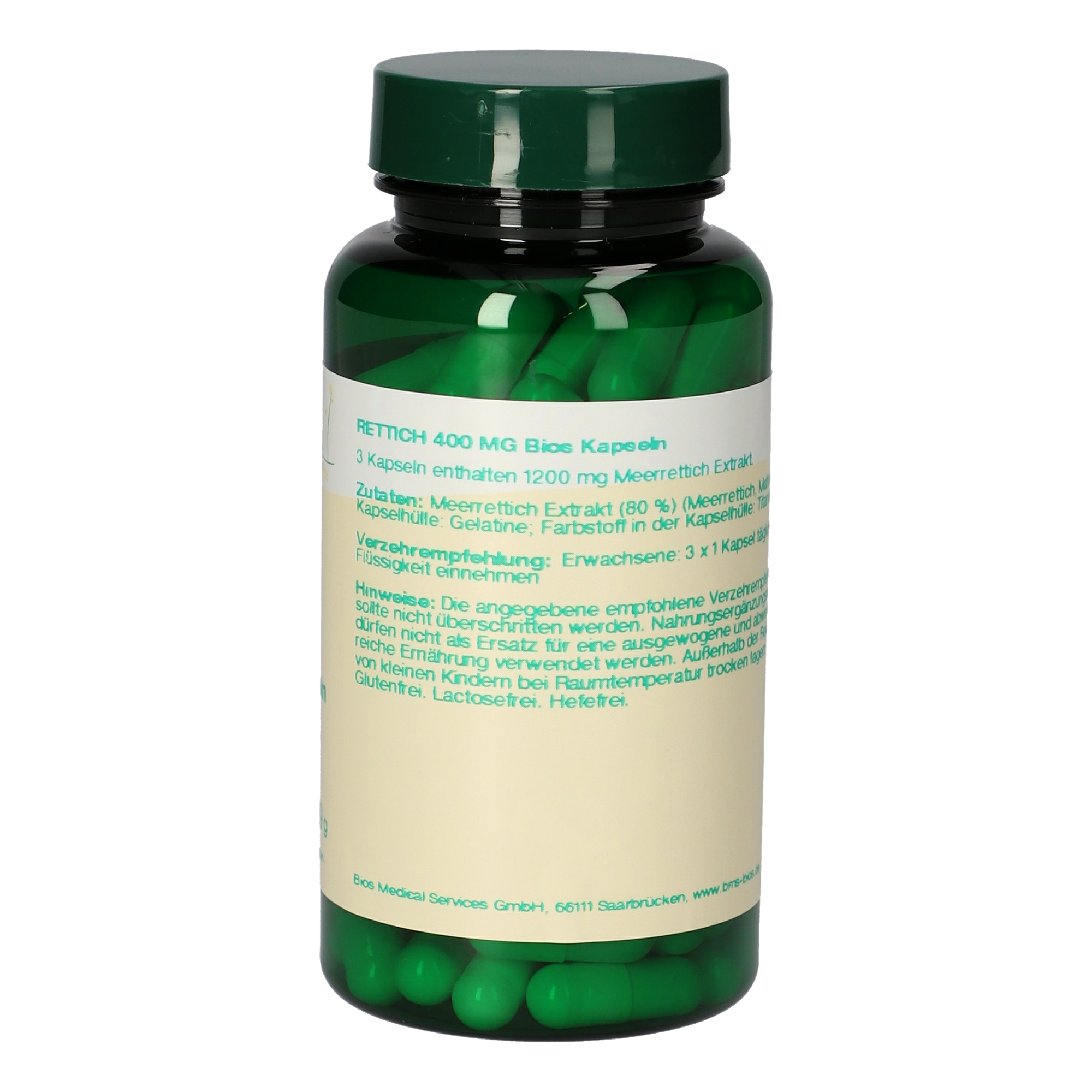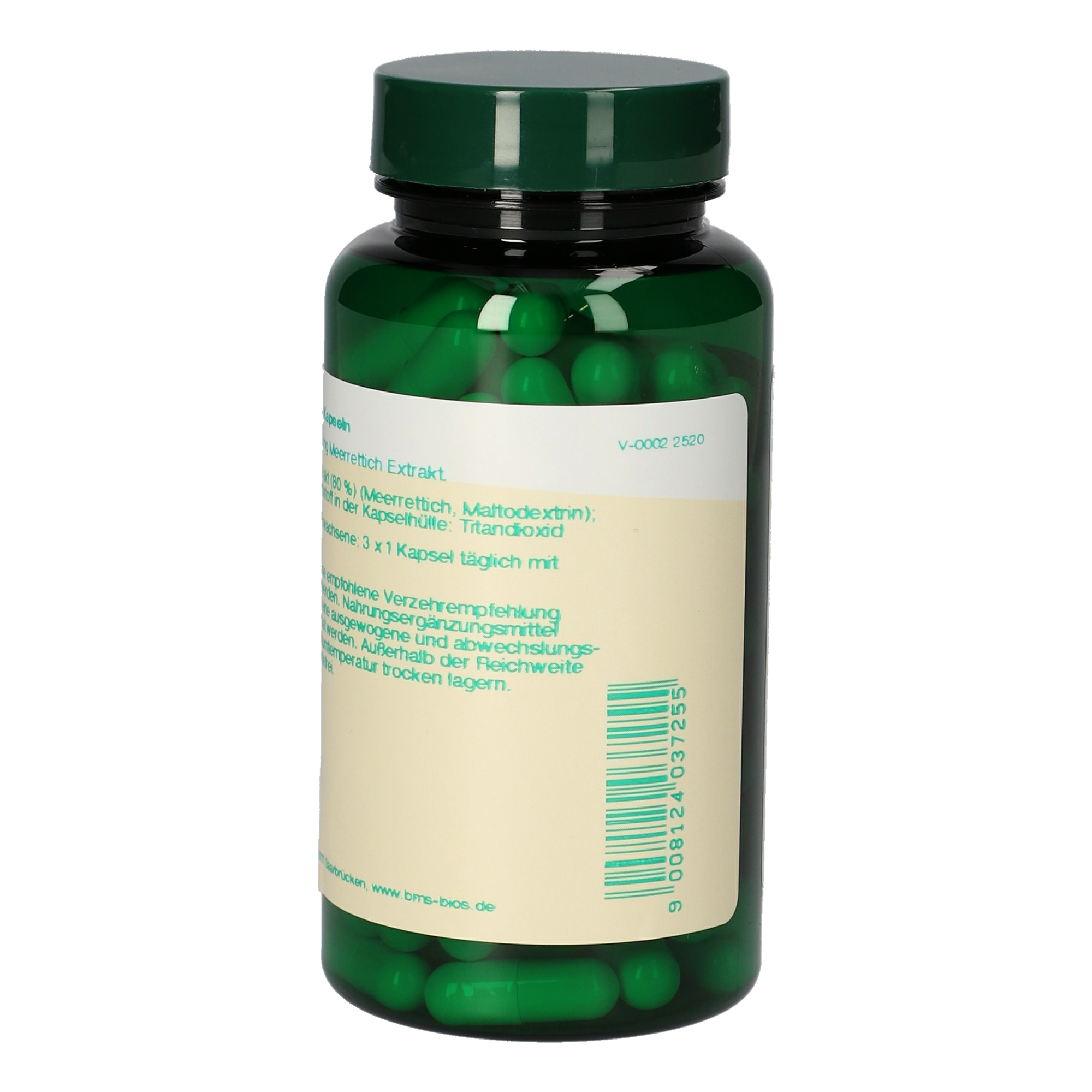 3 Kapseln enthalten 1200 mg Meerrettich Extrakt.