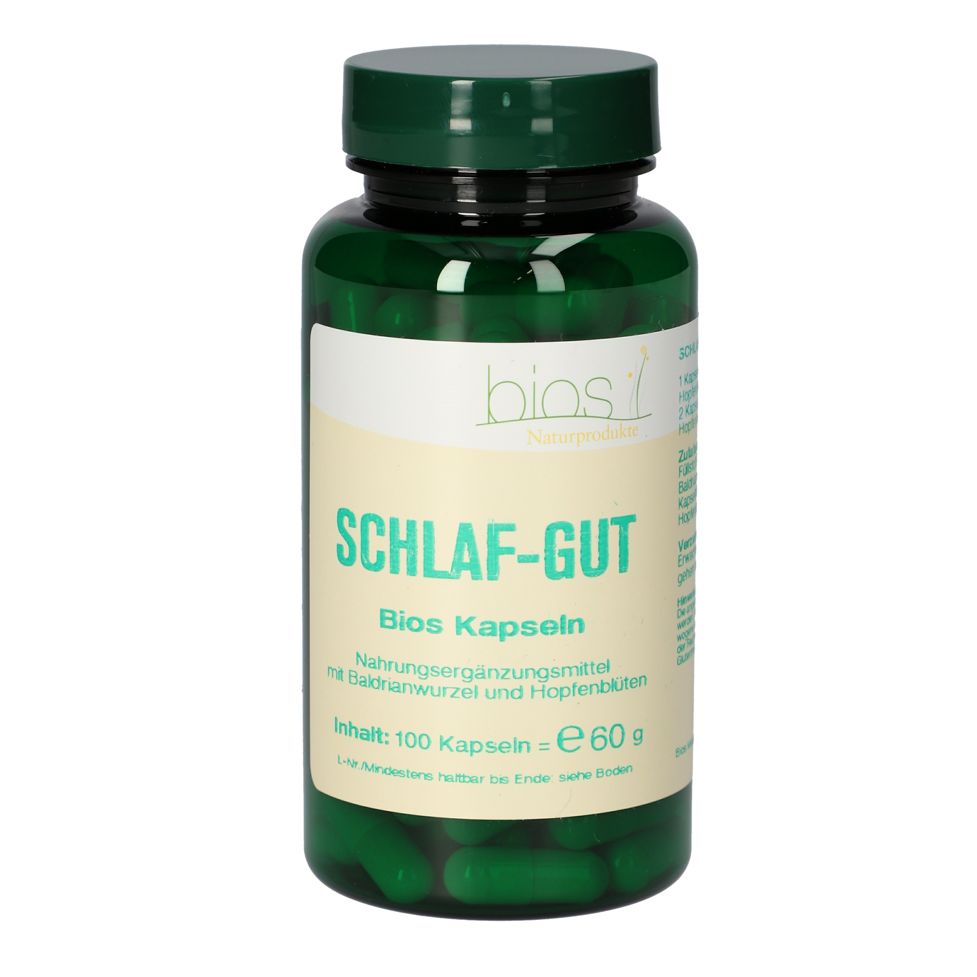 Gut ein Drittel unseres Lebens verbringen wir im Schlaf. In dieser scheinbar so inaktiven Nachtphase arbeitet unser Körper auf Hochtouren: Das Gedächtnis wird „resettet“ und Stoffwechselvorgänge laufen ab, die unsere Abwehrkräfte stärken. Ein ausgeschlafener Körper fühlt sich frisch und leistungsfähig, und gute Laune ist vorprogrammiert. Guter Schlaf ist eine wichtige Säule des geistigen und körperlichen Wohlbefindens und lässt uns von innen und außen strahlen. Dauerhafter Schlafmangel hingegen führt zwangsläufig zu ernsthaften körperlichen und geistigen Schwierigkeiten. Schlaf-Gut Bios Kapseln enthalten hochwertige Trockenextrakte aus der Baldrianwurzel und der Hopfenblüte. Der physiologische Schlafrhythmus bleibt dabei unbeeinflusst. Dieses pflanzliche Präparat bietet eine optimale Alternative zu abhängig machenden schlaffördernden Mitteln.