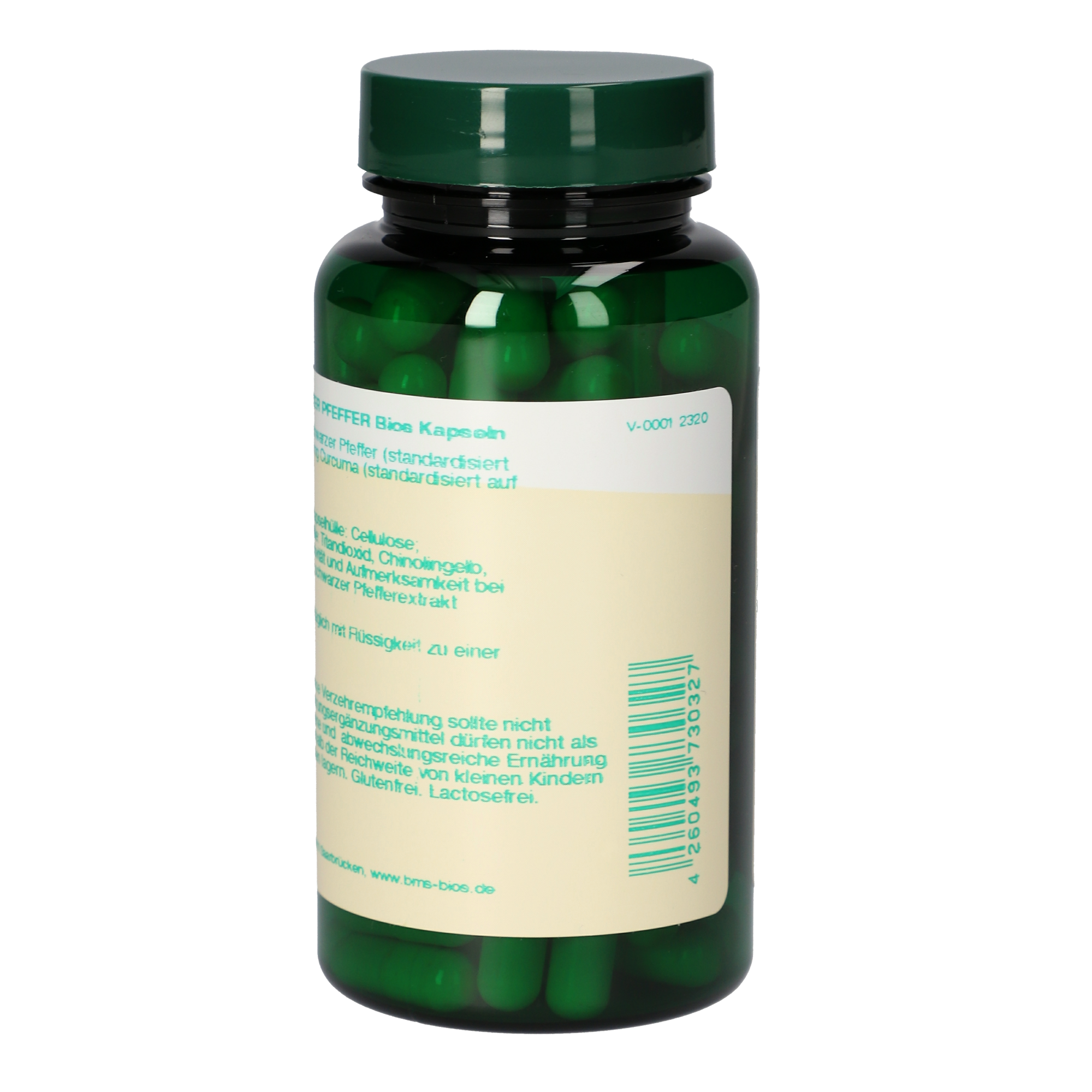 1 Kapsel enthält 500 mg Curcuma (standardisiert auf 95 % Curcuminoide) und 5,3 mg schwarzer Pfeffer (standardisiert auf 95 % Piperin).