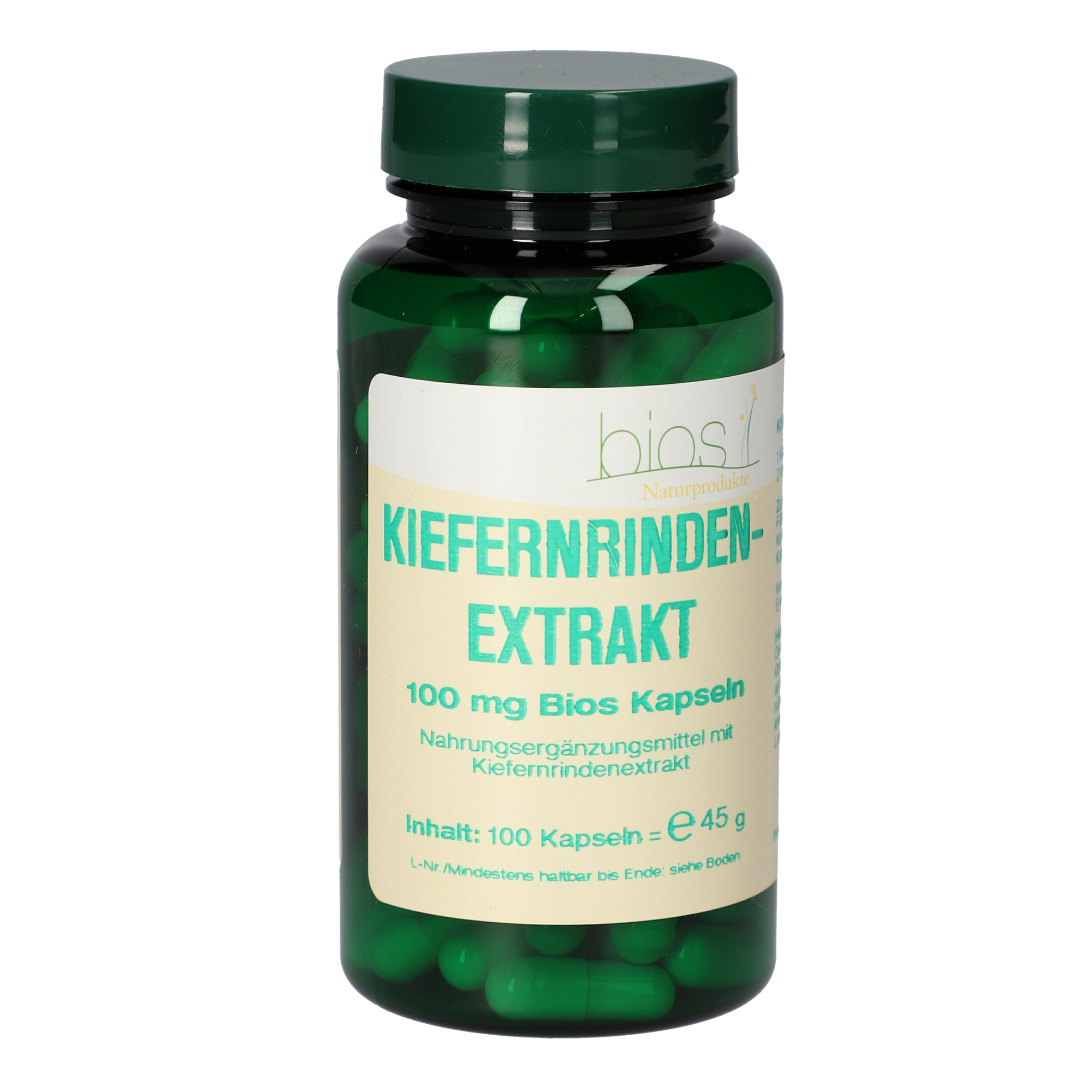 Kiefernrindenextrakt 100 mg Bios Kapseln enthalten den natürlichen Pflanzenextrakt aus der Rinde der französischen Meereskiefer (Pinus pinaster). Dieser Extrakt weist einen hohen Gehalt an Proanthocyanidinen auf (65–75%) und ist reich an organischen Säuren und Bioflavonoiden. Als kraftvolles Reduktionsmittel bindet der Kiefernrindenextrakt freie reaktionsfreudige Moleküle und fördert dadurch das oxidoreduktive Gleichgewicht jeder einzelnen Zelle. Diese unerwünschten hochreaktiven Verbindungen greifen aufgrund ihrer ausgeprägten Reaktionsfreudigkeit ungezielt Substanzen des menschlichen Körpers an. Der menschliche Organismus hat zwar für die Abwehr dieser Substanzen ein Schutzsystem entwickelt. Dieses kann jedoch durch die zusätzliche Aufnahme pflanzlicher Komponenten mit reduktivem Charakter erhöht werden. Der Seekiefer-Rindenextrakt hat dabei ein weitaus höheres Redox-Schutzpotential als vergleichsweise Vitamin E und C. Durch seinen hohen Anteil an oligomeren Proanthocyanidinen, kurz OPC genannt, unterstützt Kiefernrindenextrakt die Mikrozirkulation in den Kapillargefäßen, mit positiven Effekten auf die Gefäßwände. Die OPCs weisen eine äußerst hohe Bioverfügbarkeit auf. Das bedeutet, die Aufnahmerate vom menschlichen Körper ist sehr effizient.