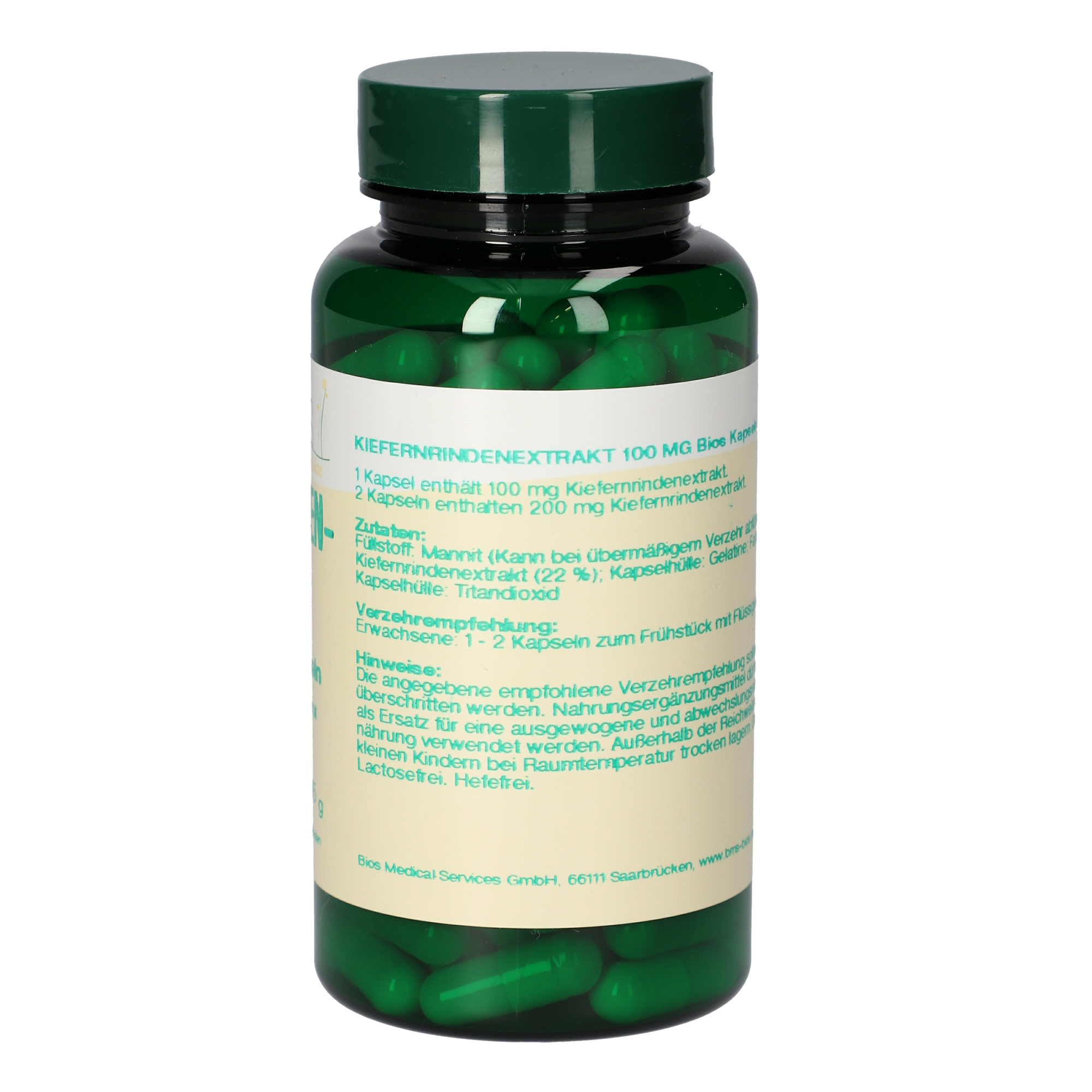 1 Kapsel enthält 100 mg Kiefernrindenextrakt.