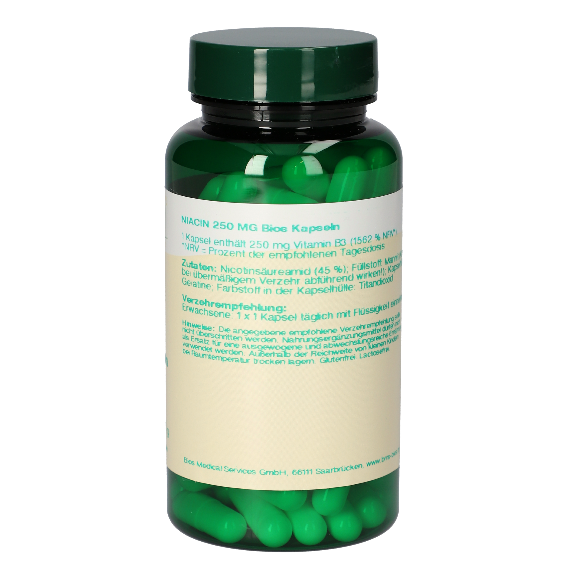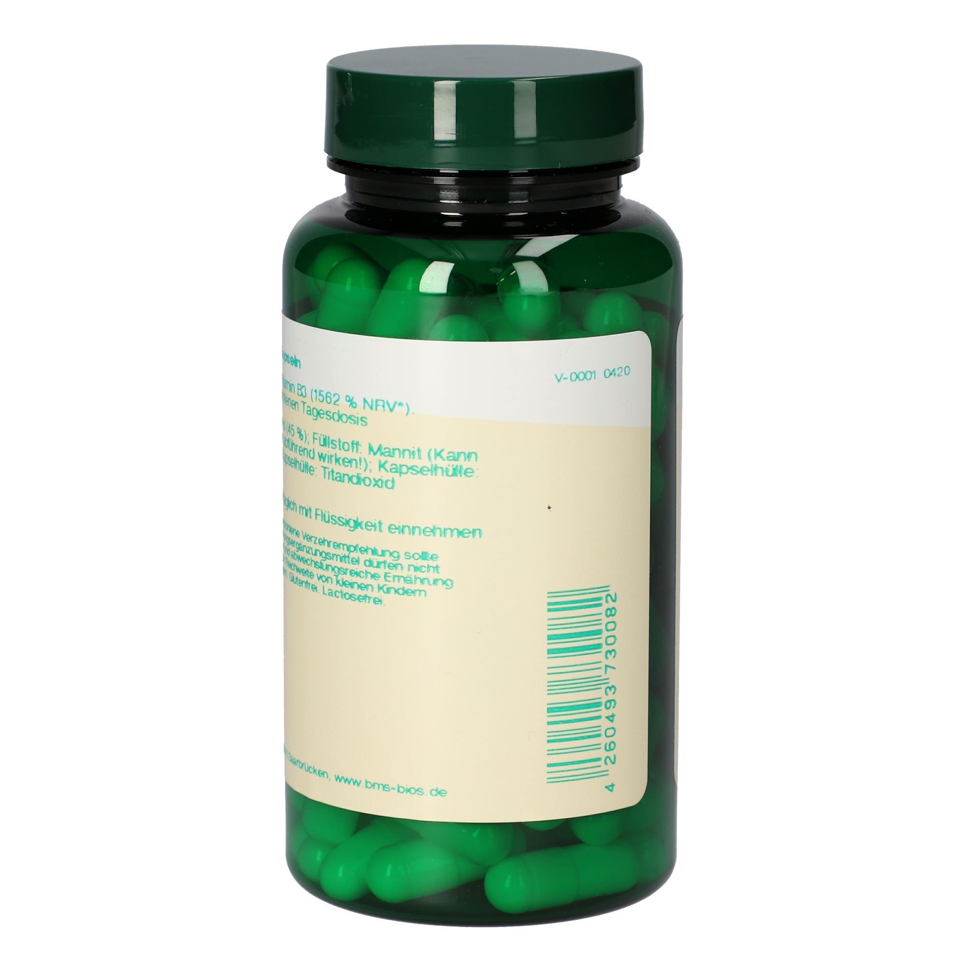 1 Kapsel enthält 250 mg Nicotinsäureamid (1562 % NRV*).
