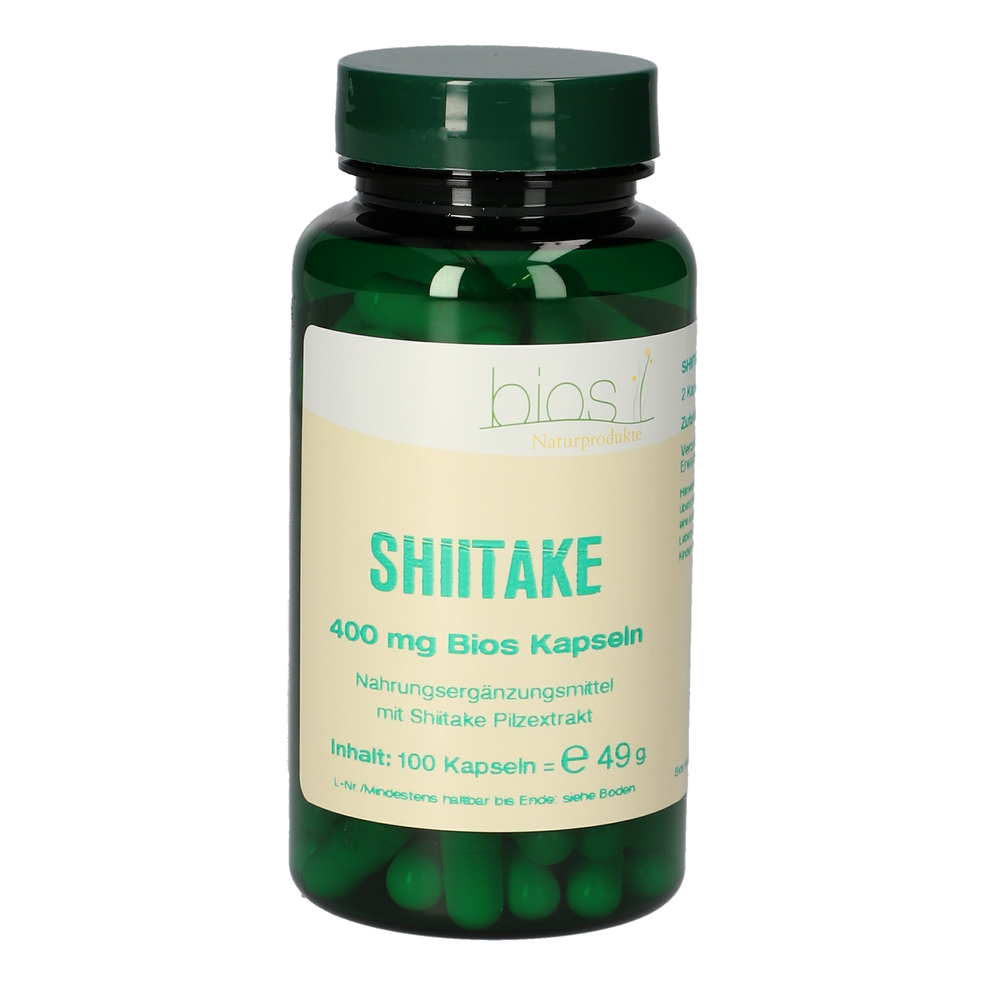 Im fernöstlichen Asien hat Shiitake bereits seit Jahrtausenden seinen festen Platz in Küche und Kultur als Symbol für Vitalität und Lebensenergie. In den Wäldern Chinas und Japans wächst dieser Vitalpilz ursprünglich wild – bevorzugt an den Stämmen von Laubbäumen. Da sich Shiitake weltweit großer Beliebtheit erfreut, wird er in steigendem Maße kultiviert und ist heutzutage nach dem Champignon der meistangebaute Kulturpilz. In Shiitake 400 mg Bios Kapseln steckt fein vermahlenes Shiitake-Pulver aus dem ganzen Pilzfruchtkörper. Es enthält hochwertiges pflanzliches Eiweiß, Vitamine und Mineralstoffe. Shiitake liefert sogar Vitamin D, was eine Seltenheit unter den Lebensmitteln darstellt. Auch besitzt dieser besondere Pilz eine Vielzahl organischer Verbindungen, darunter Beta-Glucane. Bei diesen Beta-Glucanen handelt es sich um komplexe, strukturgebende Polysaccharide mit besonderer biologischer Relevanz. Im Darm treten sie mit spezialisierten Zellen in Kontakt, die sie aufnehmen und weiterverarbeiten. Beta-Glucane unterstützen dadurch die natürlichen Prozesse des Abwehrnetzwerks im Körper. Shiitake 400 mg Bios Kapseln eignen sich somit für alle, die nach erhöhter Vitalität streben.