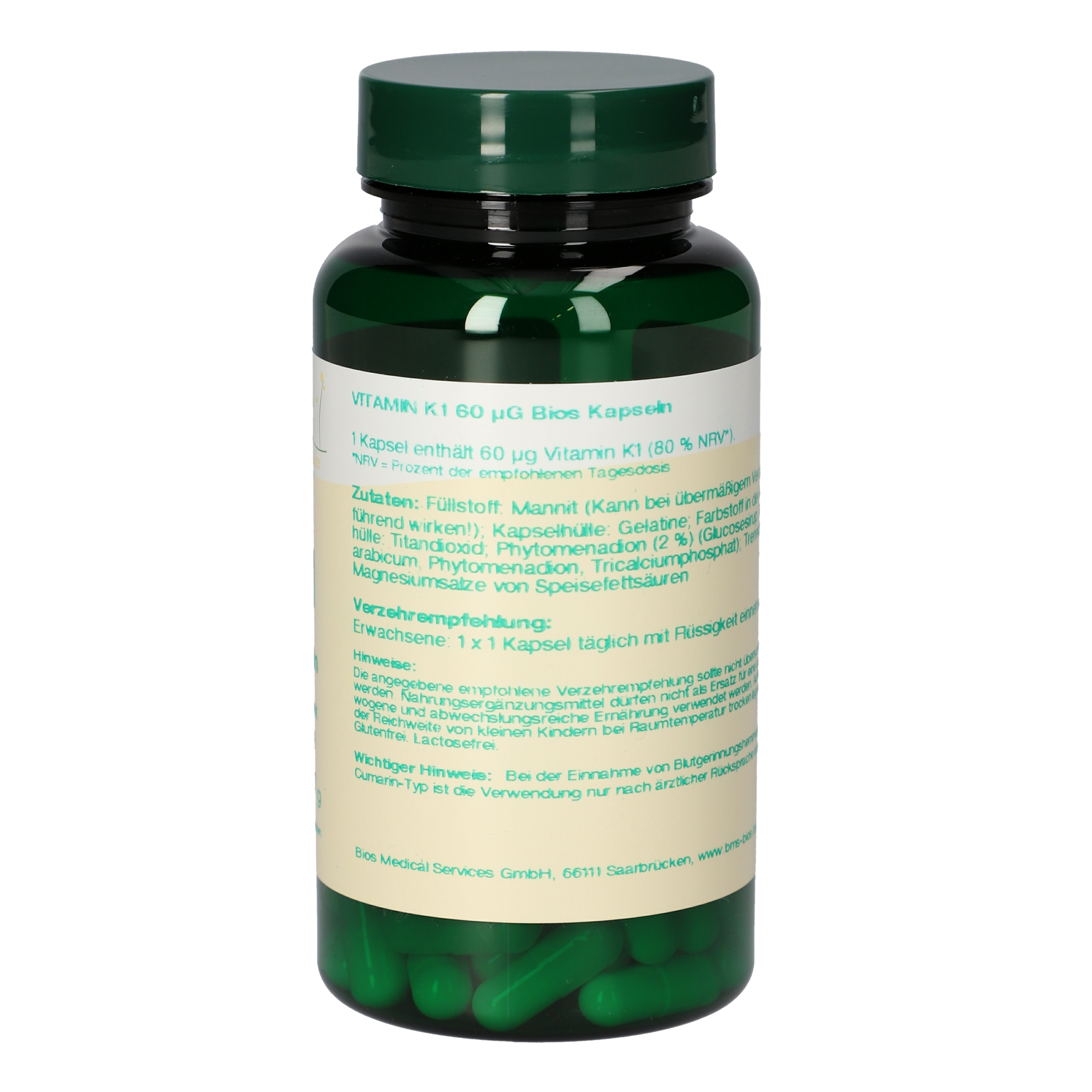 1 Kapsel enthält 60 µg Vitamin K1 (80 % NRV*).