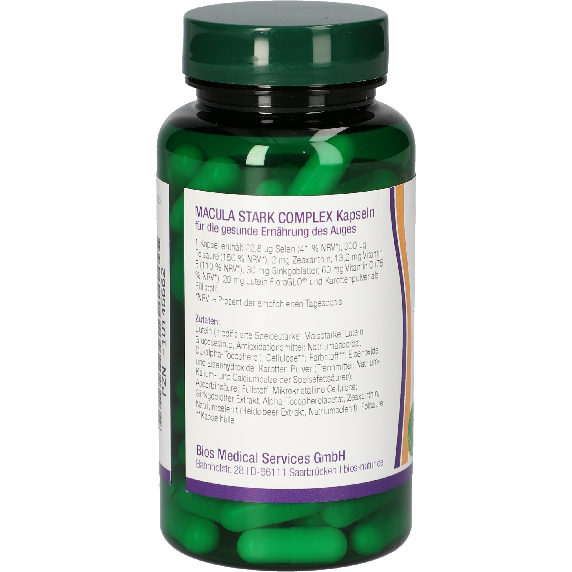 Kaum ein anderes Sinnesorgan wird von uns so sehr geschätzt wie das Auge. Über 80 % aller Umweltreize werden über dieses einzigartige Organ wahrgenommen. Die Leistungsfähigkeit des Auges nimmt durch den normalen Alterungsprozess, sowie durch bestimmte Faktoren wie Sonnenlicht, Rauchen und Nährstoffmangel ab. Der Begriff Makuladegeneration umfasst eine Reihe von Sehbeeinträchtigungen im Bereich des Gelben Fleckes (Macula lutea) der Netzhaut. Die Schädigung der Makula führt zu einer Abnahme der Sehschärfe, einer Verminderung des Kontrastempfindens und des Farbsehens, sowie einer Einschränkung der Anpassungsfähigkeit an veränderte Lichtverhältnisse. Bios Effect Macula Stark Complex behält Ihre Augengesundheit im Auge. Dieses Präparat enthält die hochwertige Kombination aus Karottenpulver, Lutein, Zeaxanthin, Ginkgoblättern Extrakt und verschiedenen auf die Augengesundheit abgestimmte Mikronährstoffen. Karotten enthalten einen hohen Anteil an Vitamin A, der zum Erhalt einer normalen Sehkraft beiträgt. Zeaxanthin und Lutein kommen in der Netzhaut des Auges, vor allem aber im Gelben Fleck, vor. Diese beiden Pigmente haben eine Filterfunktion vor zu hoher Lichteinstrahlung. Folsäure spielt eine Rolle im Prozess der Zellteilung.
