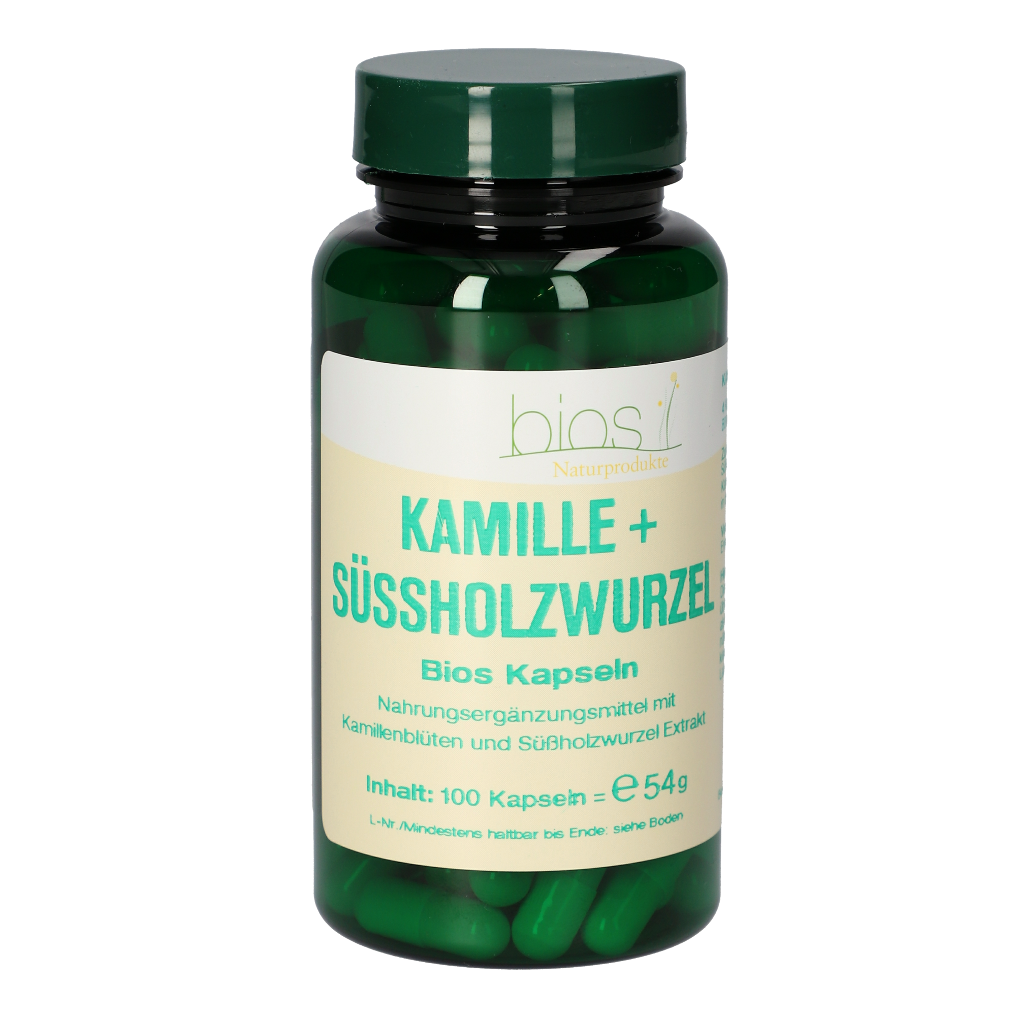 „Liebe geht durch den Magen“, aber auch „Stress schlägt auf den Magen“. Magen und Darm gelten nicht nur sprichwörtlich als Spiegel der Seele. Die Psyche hat einen erheblichen Einfluss auf die Tätigkeit von Magen und Darm. Mit einer Gesamtanzahl von etwa 200 bis 600 Millionen Nervenzellen, die unseren Darm umgeben, steht dieser Teil unseres Körpers in unmittelbaren Zusammenhang zu unserem Gehirn und kommuniziert kontinuierlich mit ihm. Nicht verwunderlich, dass Stress den Organen unseres Verdauungstraktes ordentlich zu schaffen macht. Symptome wie Sodbrennen, Übelkeit und Völlegefühl können die Folge sein. Kamille + Süßholzwurzel Bios Kapseln enthalten eine Kombination aus Kamillenblüten- und Süßholzwurzel Extrakt. Seit unserer Kindheit sind wir mit der beruhigenden Wirkung der Kamille vertraut. Aber auch Süßholzwurzel sorgt für Entspannung von innen. Ganz zum Wohl für die Organe unseres Verdauungstraktes. Die Dauer der Anwendung sollte 4 bis 6 Wochen nicht überschreiten, die Einnahme kann jedoch nach einer Pause wieder fortgesetzt werden.