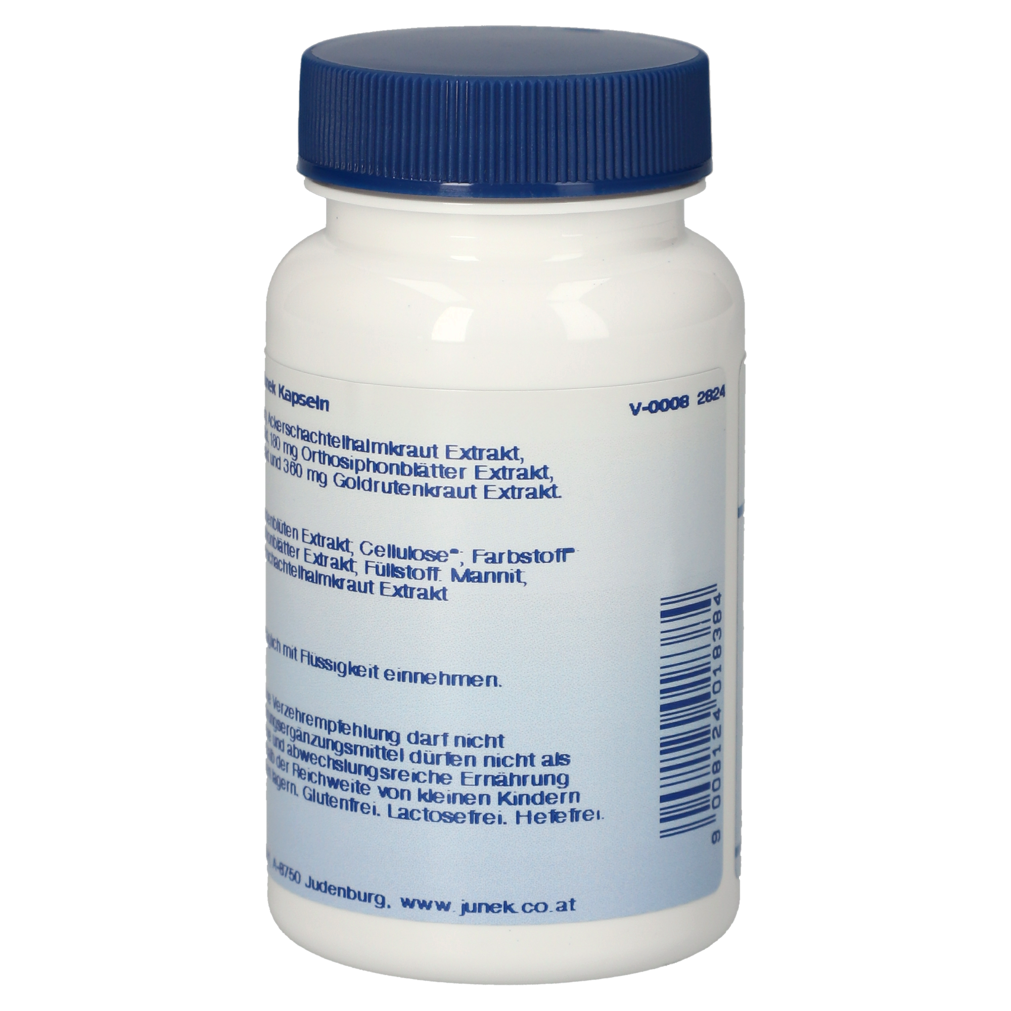 3 Kapseln enthalten 144 mg Ackerschachtelhalmkraut Extrakt, 144 mg Birkenblätter Extrakt, 180 mg Orthosiphonblätter Extrakt, 324 mg Lindenblüten Extrakt und 360 mg Goldrutenkraut Extrakt.