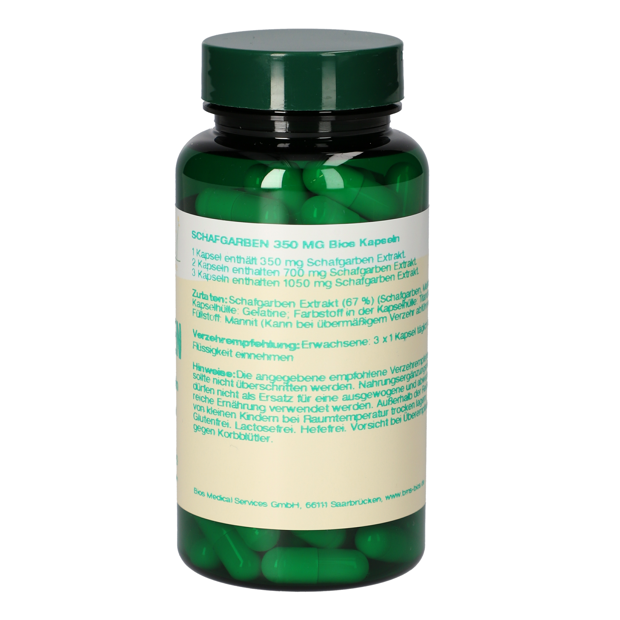 3 Kapseln enthalten 1050 mg Schafgarben Extrakt.