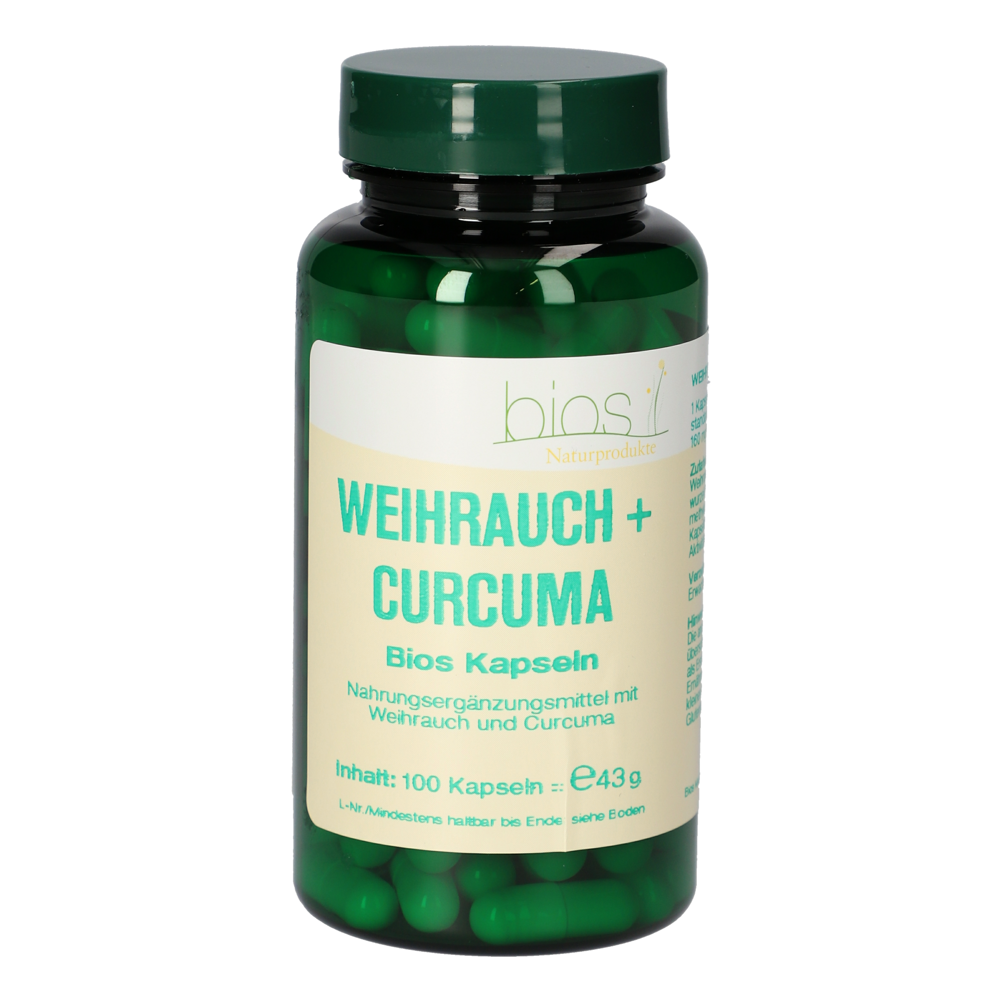 Das Kombinationspräparat Weihrauch + Curcuma Bios Kapseln fokussiert vitale Gelenke, damit Bewegung wieder Freude bereitet. Weihrauchharz enthält neben ätherischen Ölen und Gerbstoffen vor allem Harzsäuren (Boswelliasäuren). Diese balancieren vor allem körpereigene überschießende Reaktionen aus und eignen sich zur Unterstützung der Gelenke. In Weihrauch + Curcuma Bios Kapseln wird das luftgetrocknete Harz des indischen Weihrauchbaums (Boswellia serrata) verwendet. Dieses hat einen hohen Anteil an Boswelliasäuren (mindestens 85 %) und ist dadurch besonders hochqualitativ. Curcuma ist ein beliebtes Gewürz der orientalischen Küche. Es kann allerdings weitaus mehr als nur Speisen verfeinern. Das im Wurzelstock enthaltene lipophile Polyphenol Curcumin hat redox-aktive Eigenschaften und spielt eine Rolle für das Wohlbefinden. Auch für den Erhalt der Beweglichkeit bei Gelenksbelastungen kann Curcuma hilfreich sein. Letztendlich sorgt das Gewürz außerdem für eine schöne Haut und hat einen positiven Einfluss auf die Verdauung und den Darm.