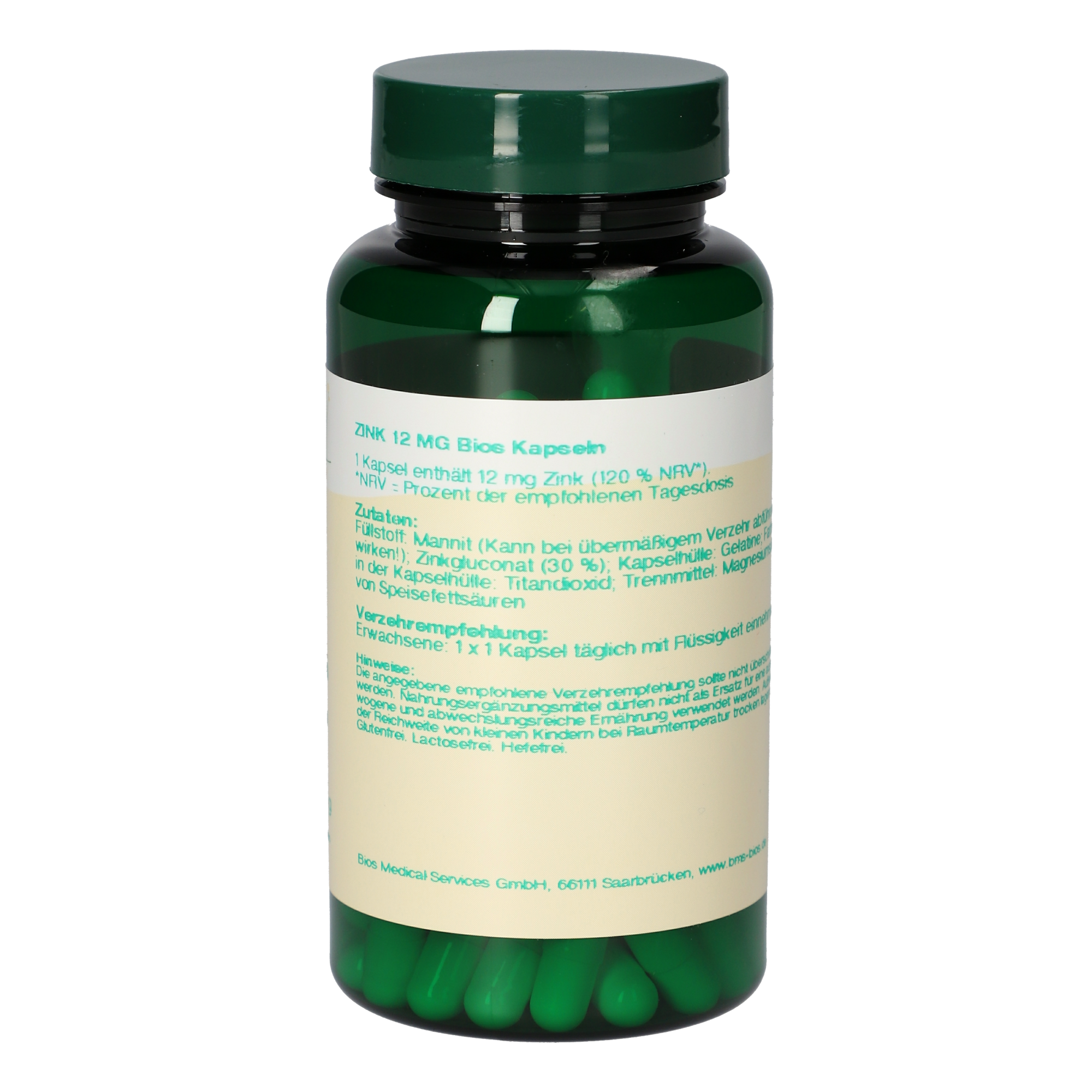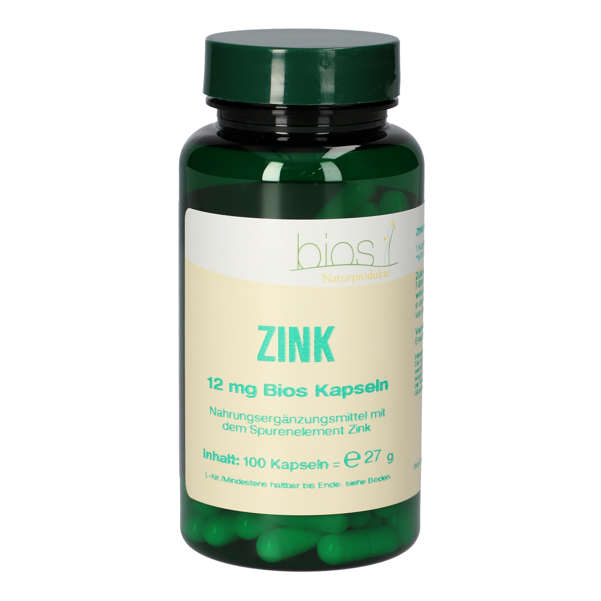 1 Kapsel enthält 12 mg Zink (120 % NRV*).