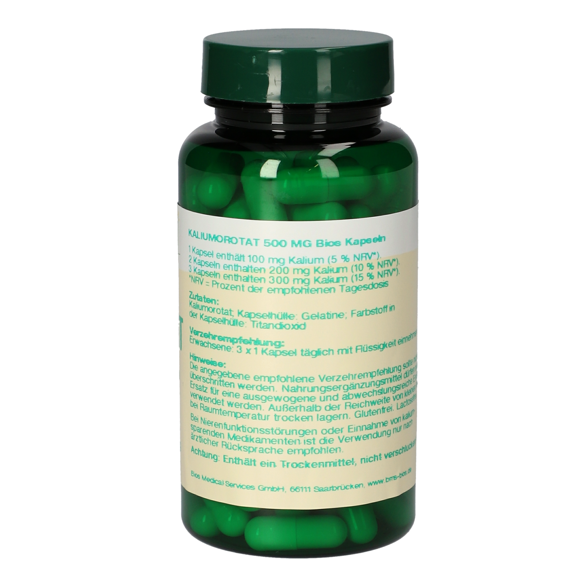 Die angegebene empfohlene Verzehrempfehlung darf nicht überschritten werden. Nahrungsergänzungsmittel dürfen nicht als Ersatz für eine ausgewogene und abwechslungsreiche Ernährung verwendet werden. Außerhalb der Reichweite von kleinen Kindern bei Raumtemperatur trocken lagern. Glutenfrei. Lactosefrei. Bei Nierenfunktionsstörungen oder Einnahme von kaliumsparenden Medikamenten ist die Verwendung nur nach ärztlicher Rücksprache empfohlen. Achtung: Enthält ein Trockenmittel, nicht verschlucken!
