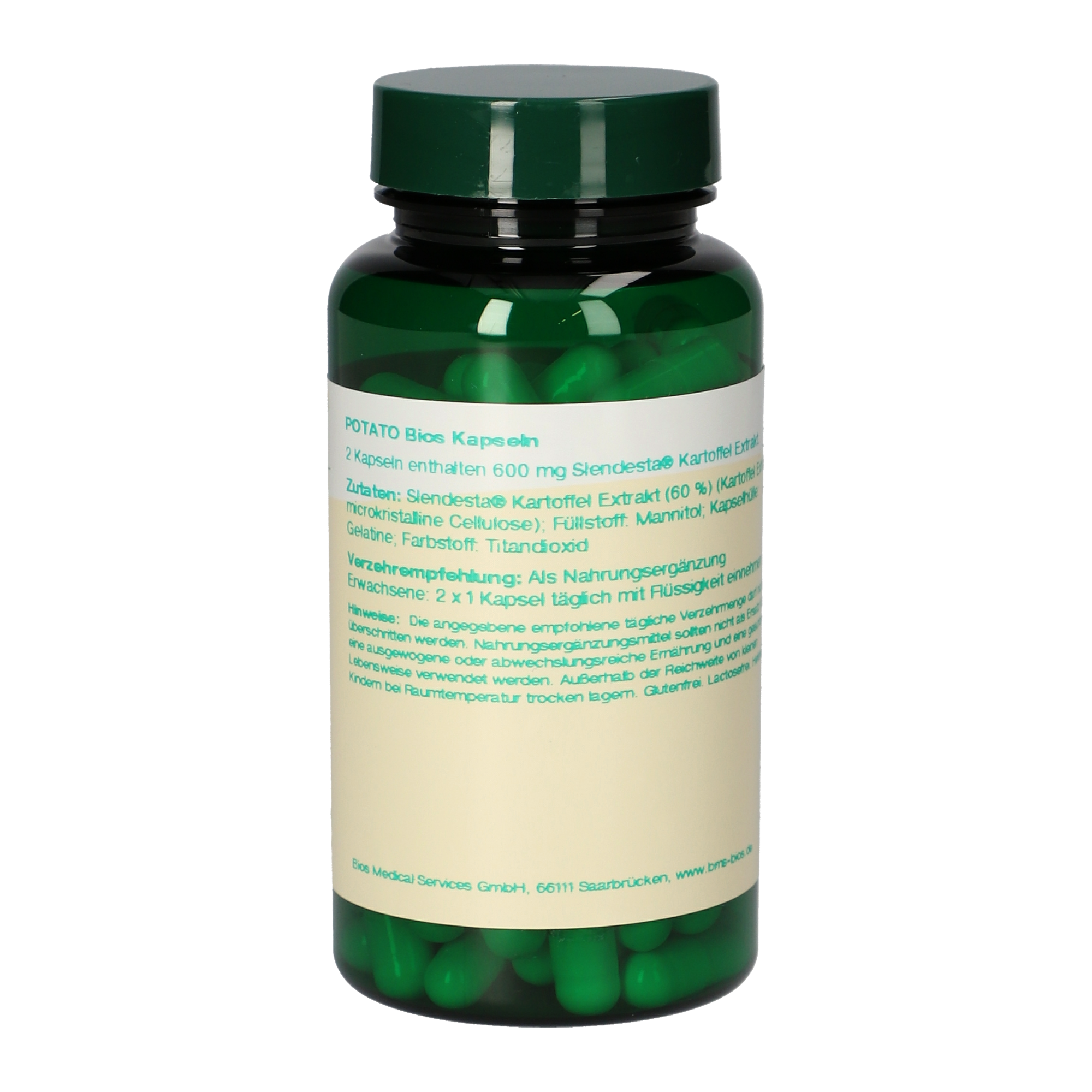 2 Kapseln enthalten 600 mg Kartoffel Extrakt (Siendesta® Kartoffel Extrakt).