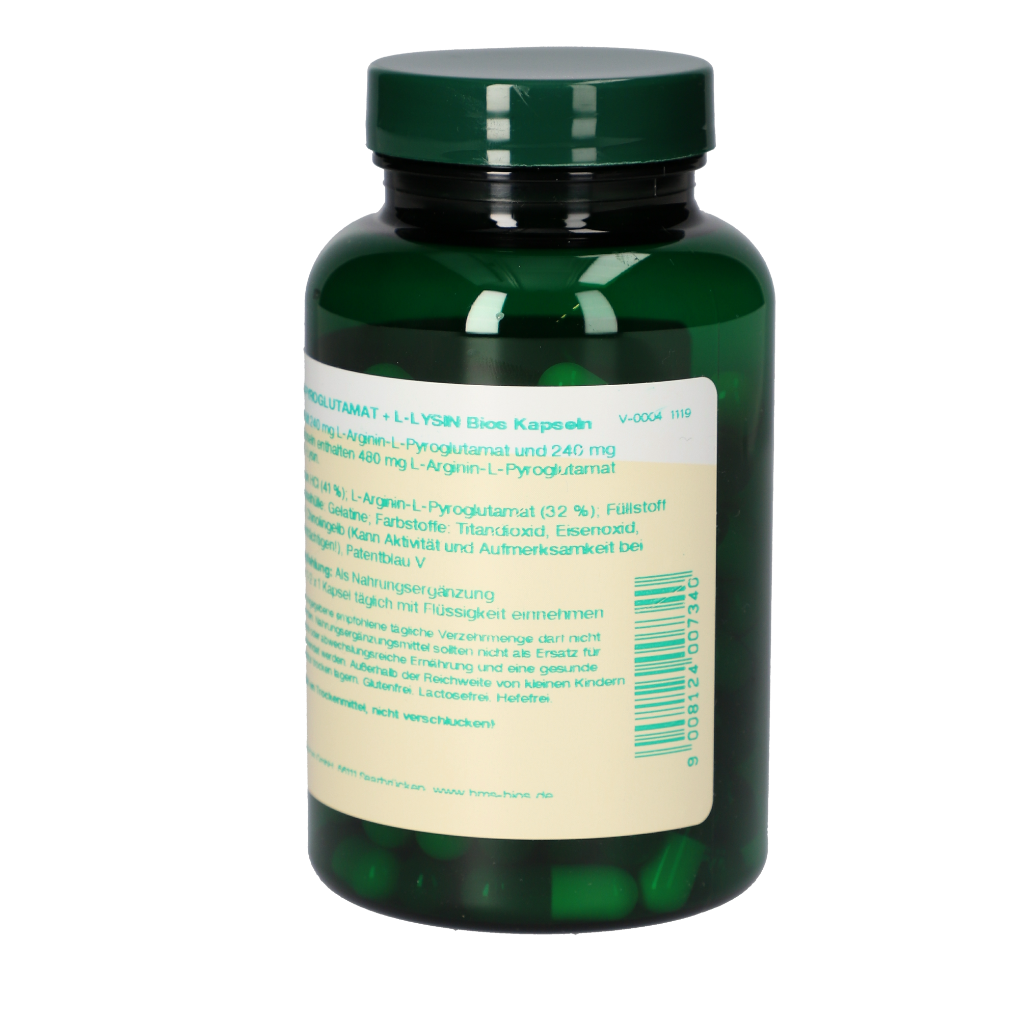 1 Kapsel enthält 240 mg L-Arginin-L-Pyroglutamat und 240 mg L-Lysin.