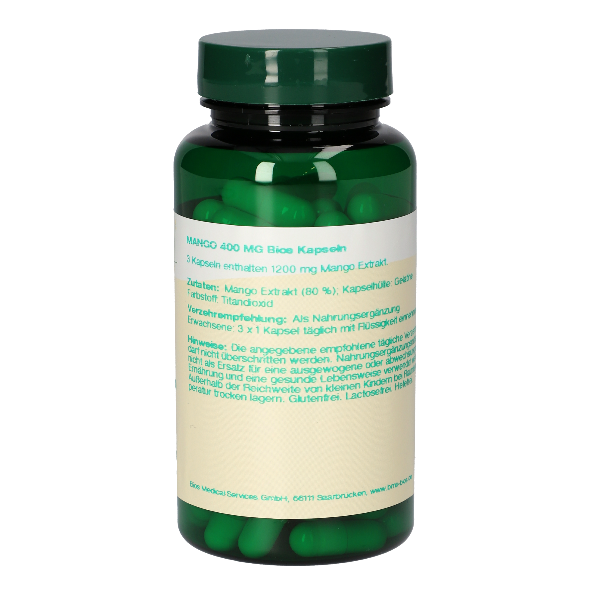 3 Kapseln enthalten 1200 mg Mango Extrakt.