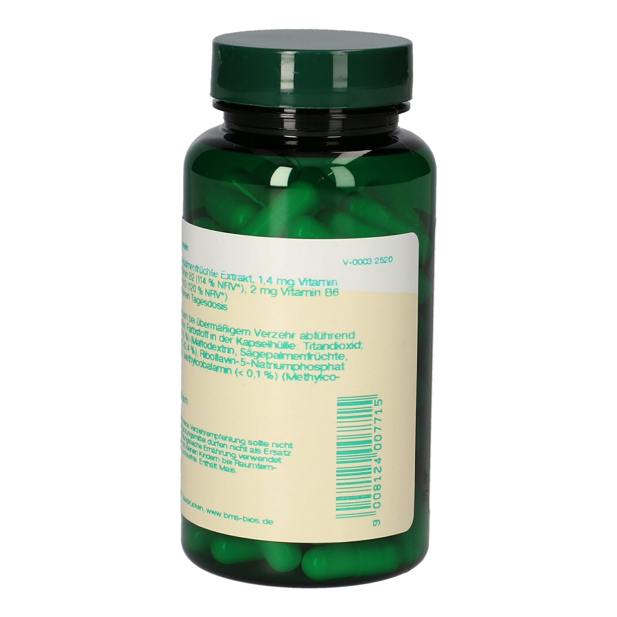 Klein wie ein Golfball und nur etwa 20 Gramm schwer – oft wird die Prostata vom Mann kaum beachtet. Dabei spielt dieses kleine Drüsenorgan, das direkt unter der Harnblase sitzt, eine entscheidende Rolle für Fruchtbarkeit, Sexualverhalten und Harnfunktion. Bei einigen Männern wächst die Prostata mit zunehmendem Alter allerdings an und kann zu häufigem Harndrang sowie Schwierigkeiten beim Wasserlassen führen. Sägepalmen Bios Kapseln enthalten die abgestimmte Kombination aus Sägepalmen Extrakt und den Vitaminen Thiamin (Vitamin B1), Riboflavin (Vitamin B2), Vitamin B6 und Vitamin B12. Die Sabalfrüchte der Sägepalme liefern zahlreiche freie Fettsäuren, die in dieser Form in der Natur nur selten vorkommen. Diese natürlichen Fettsäuren sind dafür bekannt, in den Prozess der DHT-Bildung einzugreifen, einem Faktor, der mit altersbedingten Veränderungen der Prostata assoziiert ist. Thiamin, Riboflavin, Vitamin B6 und Vitamin B12 tragen zu einem normalen Energiestoffwechsel bei. Vitamin B6 trägt zu einem normalen Eiweiß- und Glykogenstoffwechsel bei und trägt zur Regulierung der hormonellen Aktivität bei. Vitamin B12 spielt zudem eine Rolle im Prozess der Zellteilung.