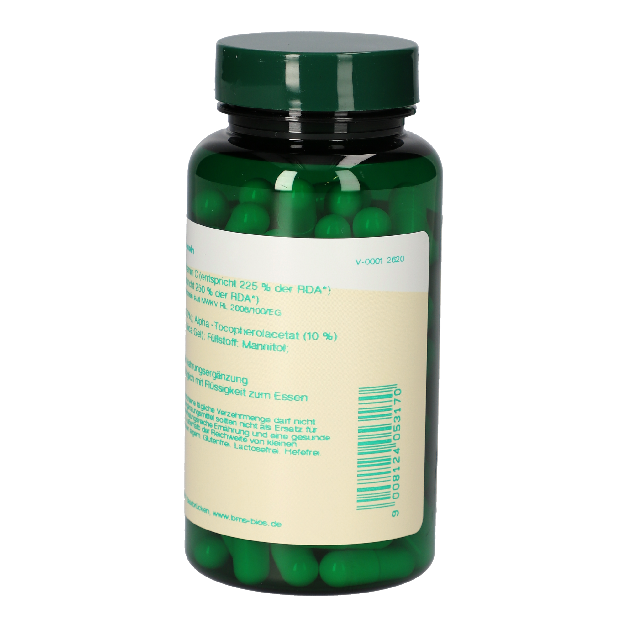 1 Kapsel enthält 180 mg Vitamin C (225 % NRV*) und 30 mg Vitamin E (250 % NRV*).